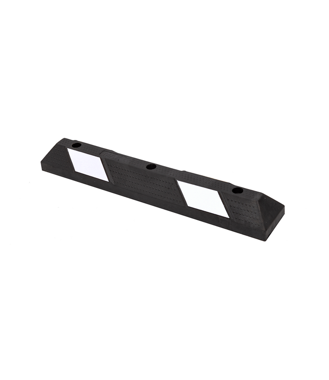 This 90 cm long parking stop is perfect for areas where 180 cm parking stops are too large. Made from vulcanized rubber, 30% of which is recycled, the parking stop is double-sided with reflective strips in yellow or white. It features two mounting holes for secure installation on concrete, asphalt, or paving. Optionally, the parking stop can also be glued to the road surface.
